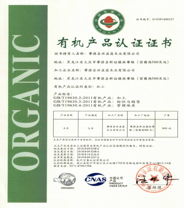 有機(jī)大米基地加工有機(jī)證書
