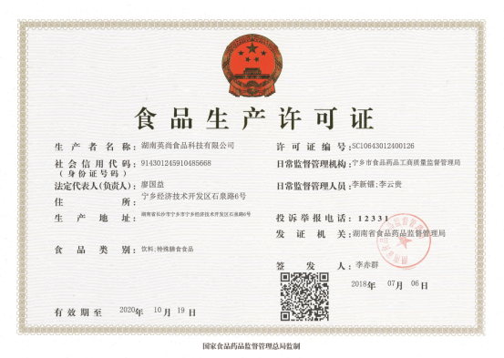 (圖為嬰尚食品公司最新食品生產(chǎn)許可證)