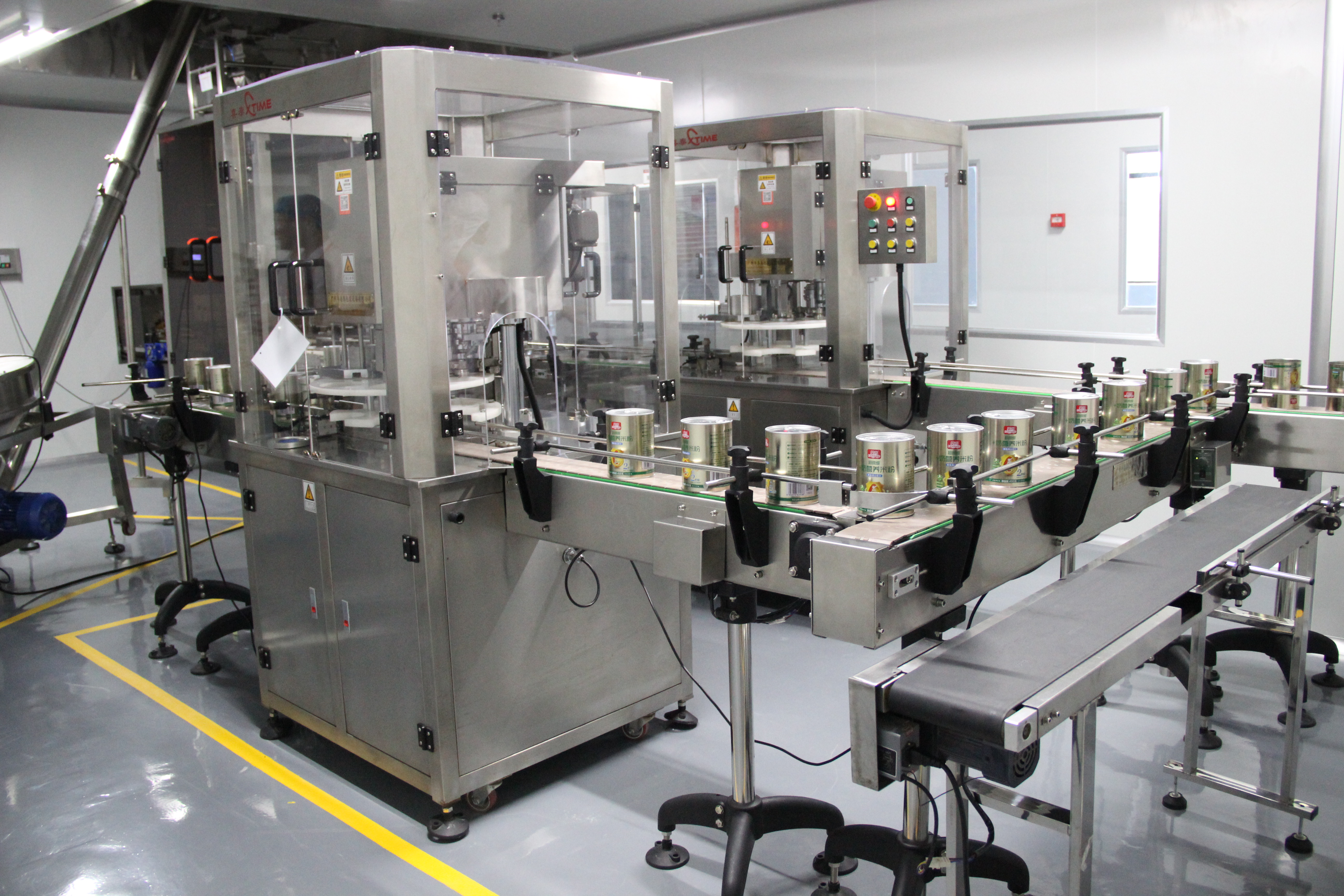 (圖為全自動灌裝生產(chǎn)線,嬰尚超細(xì)微米粉正在生產(chǎn))