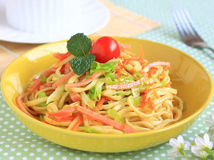 夏天天氣比較熱的時候,寶寶食欲不好,對吃飯沒興趣的時候,可以給寶寶嘗試一下涼拌雞絲面。雞肉蛋白質(zhì)的含量比例較高,種類多,而且消化率高,有增強體力、強壯身體的作用。菠菜富含β胡蘿卜素,維生素A和上皮細胞的形成有關(guān),上皮細胞有阻擋病原菌介入的功能,可以保護身體,提高寶寶的免疫力。